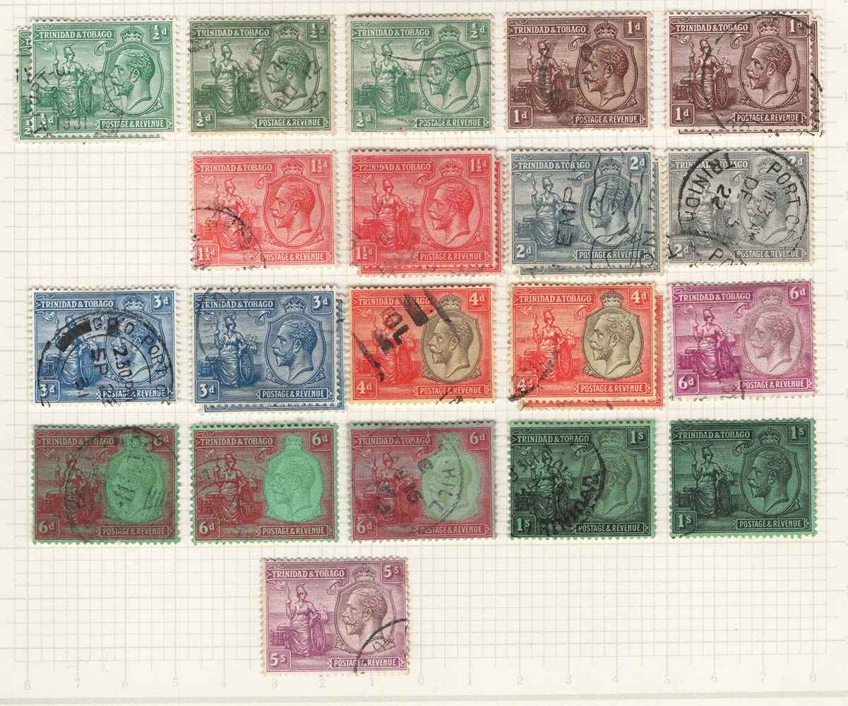 #739 Trinidad & Tobago 1922 ½d – 5s range vfu incl 4d wmk CA sg216, 6d dull purple & bright magenta sg225 and 5s c£112+