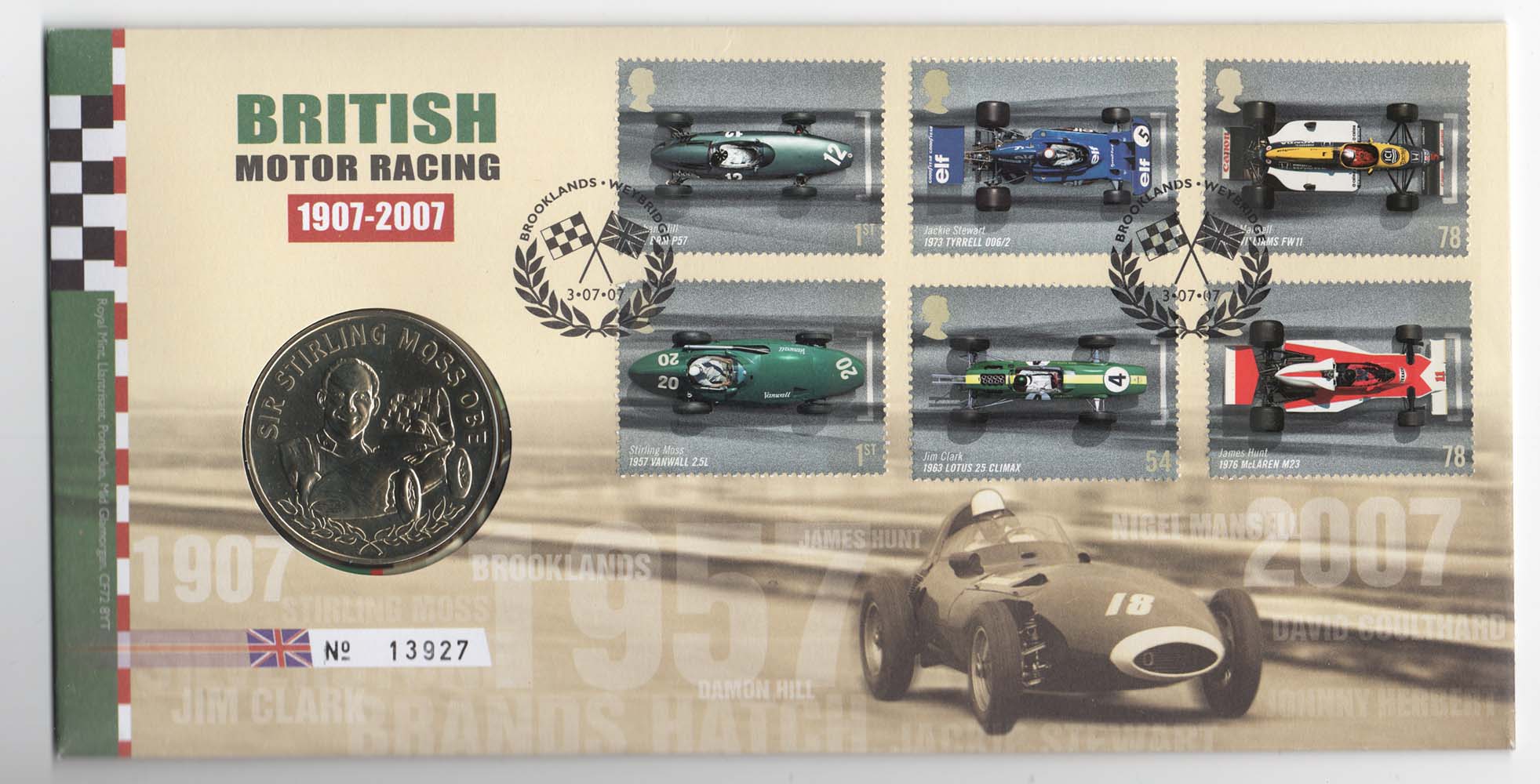 British Motor Racing ROYAL MAIL/MINT COIN Cover – Stirling Moss Medallion