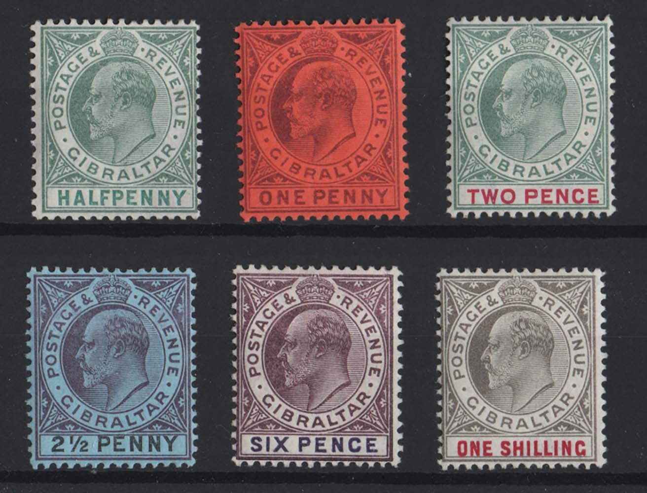 Gibraltar 1903 CA watermark ½d – 1s fine mint sg46-51 cat £194 [ref 293-749/sa/ak0671]