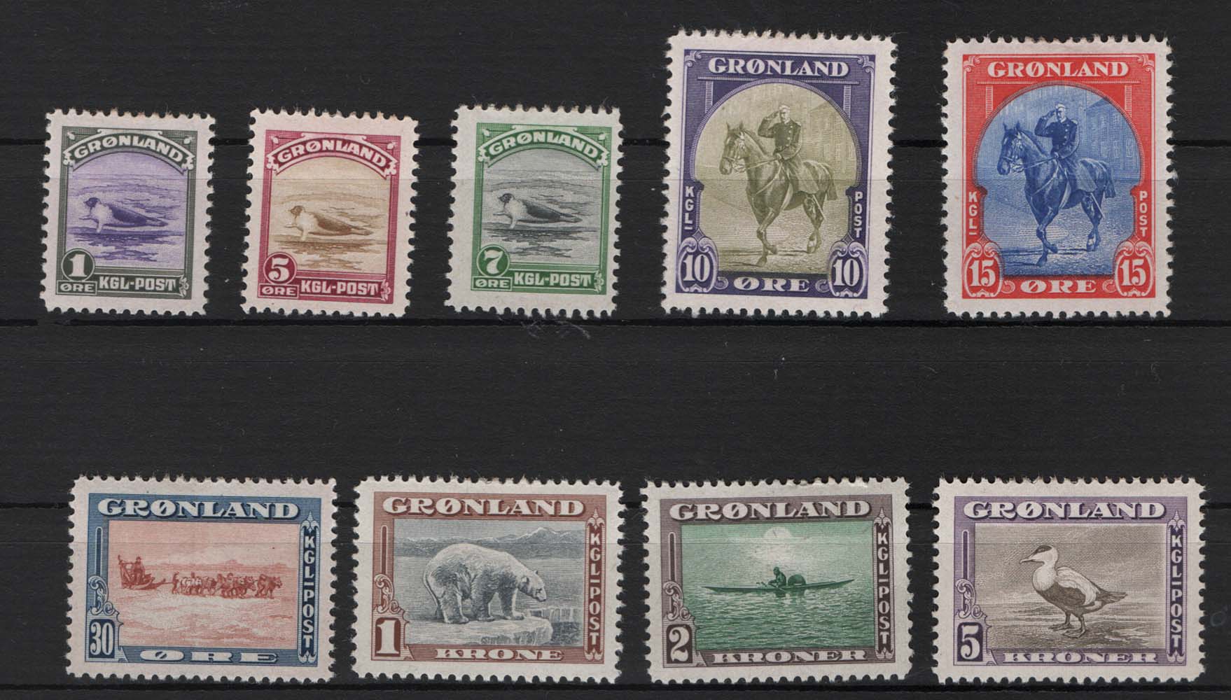 Greenland 1945 1ö – 5k set of 9 fresh m/mint sg8-16 cat £325 [ref 293-763/b08/ak0454]