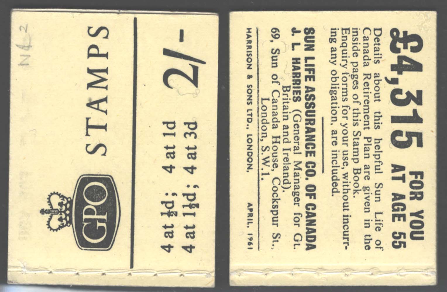 GB Booklets N4 2s April 61 cat £38 [ref ebay/1195-a34 7q0689]