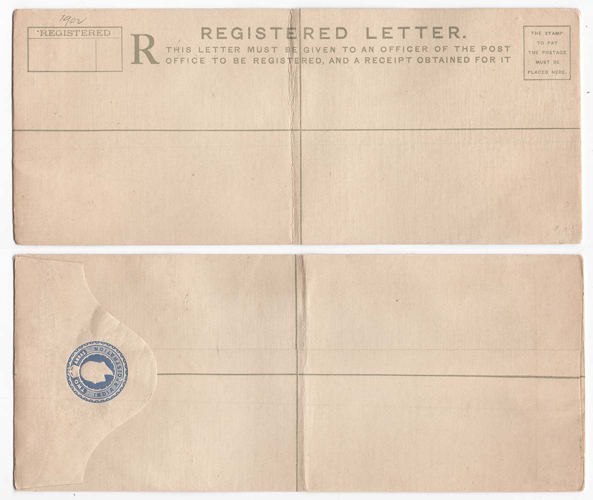 India 1902 KE7 2a registered envelope, fold at centre otherwise fine unused, the scarcer long size 255x107mm [ref 293-780/l/ak0808]