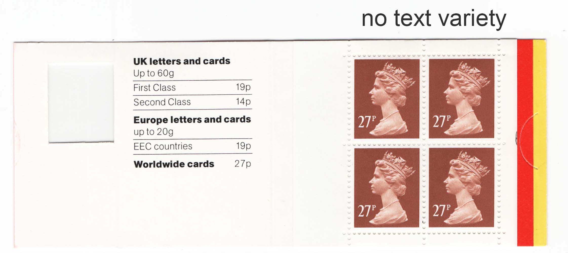 GB Booklets – Window GF1a 4x 27p no text variety