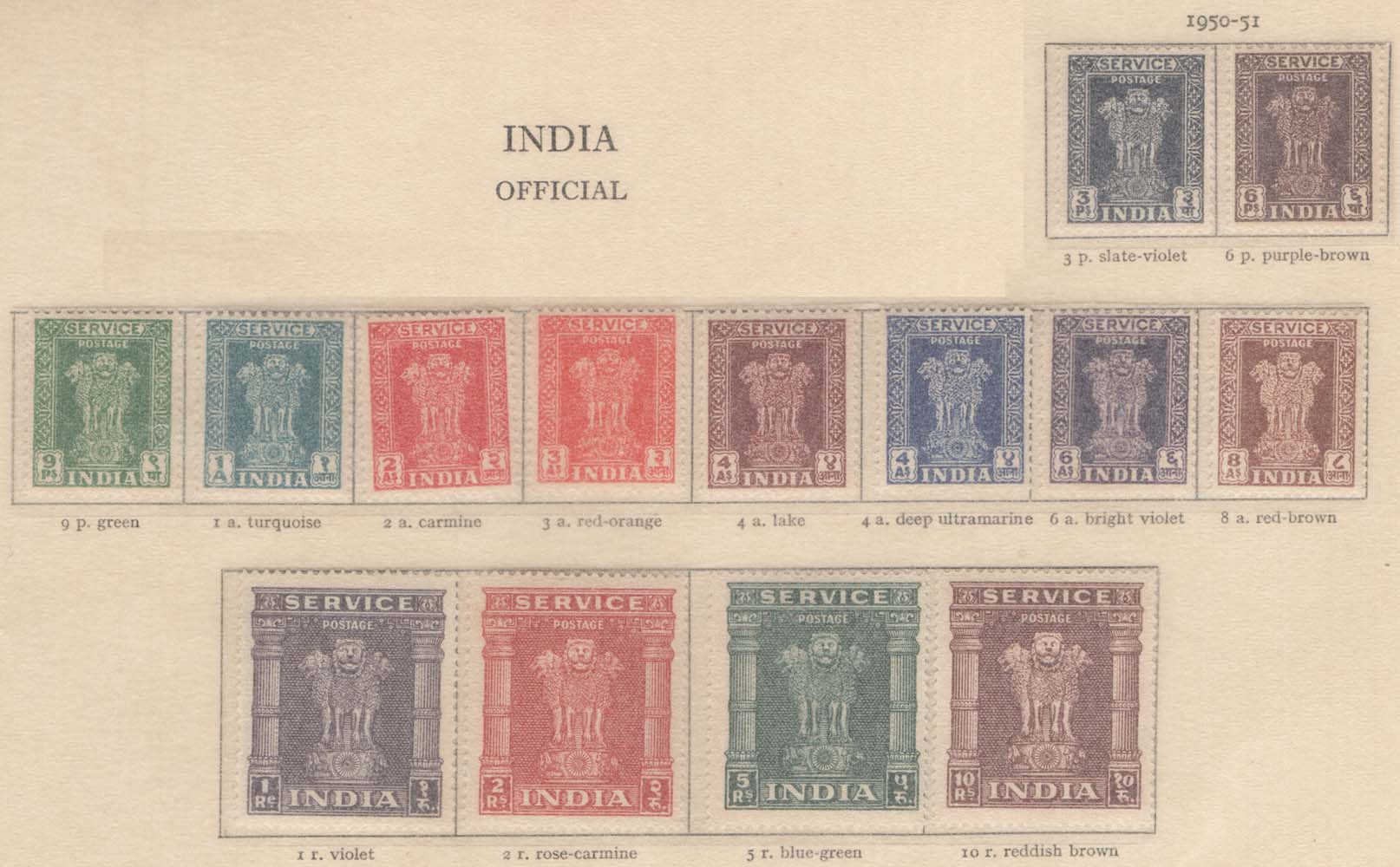 India 1950 Officials set of 14, 3p – 10r very fine mint (1a gum bend) sgO151-O164 [ref 293-788/b07/ak0179]