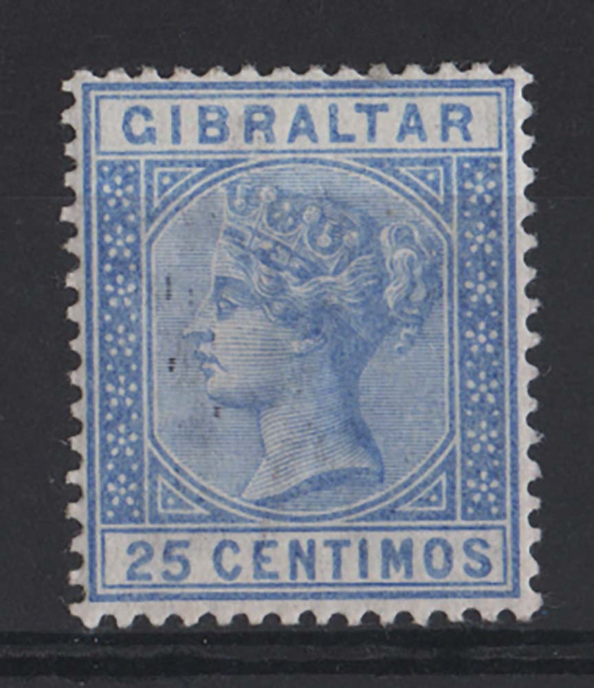 Gibraltar 1889 25c ultramarine, sg26, f mint, interesting inking flaw ae1011 sa 289/ #801