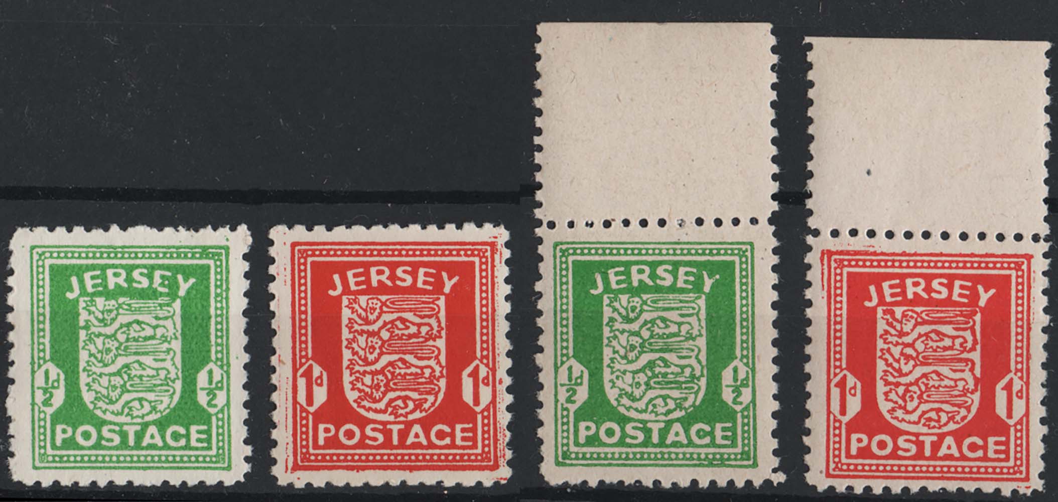 Jersey 1941 Arms ½ & 1d unmounted mint, ditto on grey paper fine unmounted mint sg1-2, sg1d, sg2e cat £42 [ref 293-804/sa/ak0276]