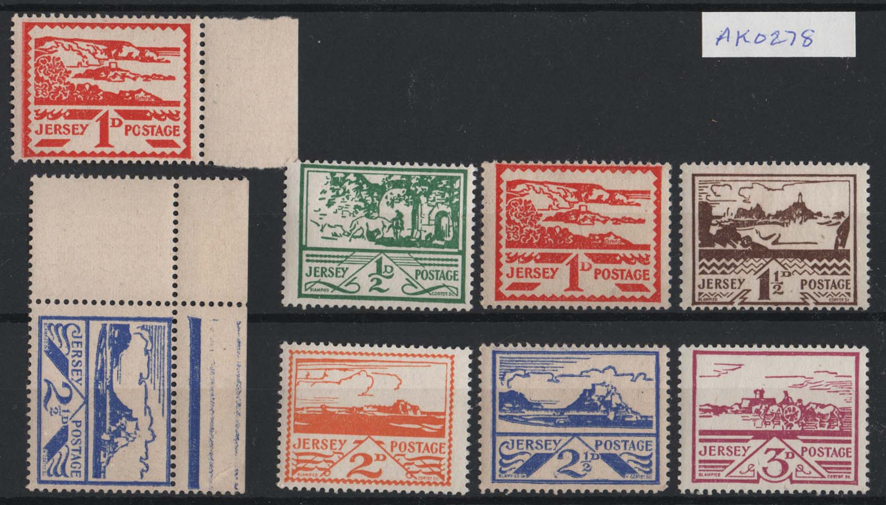 Jersey 1943 Views set of 6 unmounted mint, also the Newsprint paper pair sg3-8, 4a,7a [ref 293-806/sa/ak0278]