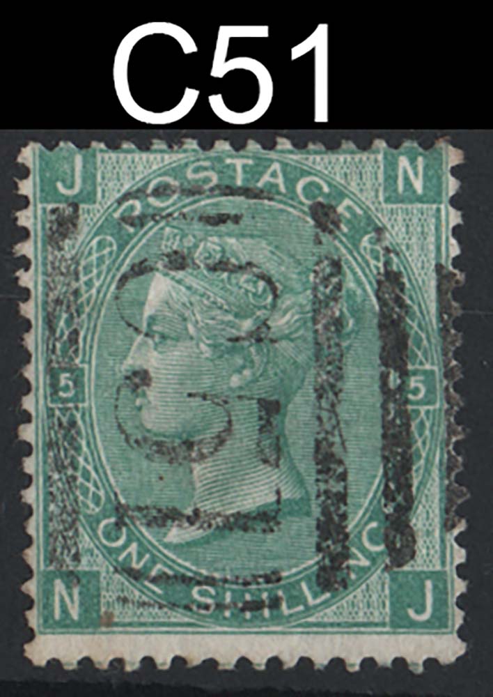 GB Used Abroad 1867 1s green plate 5 fine used, crisp C51 St Thomas, Danish West Indies numeral sg117, sgZ29 [ref 291-807/sa/ai0463]