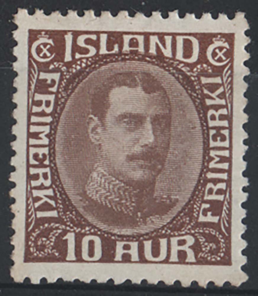Iceland 1932 10a chocolate sg187, mint, small hinge thin ae1004 sa 289/ #814