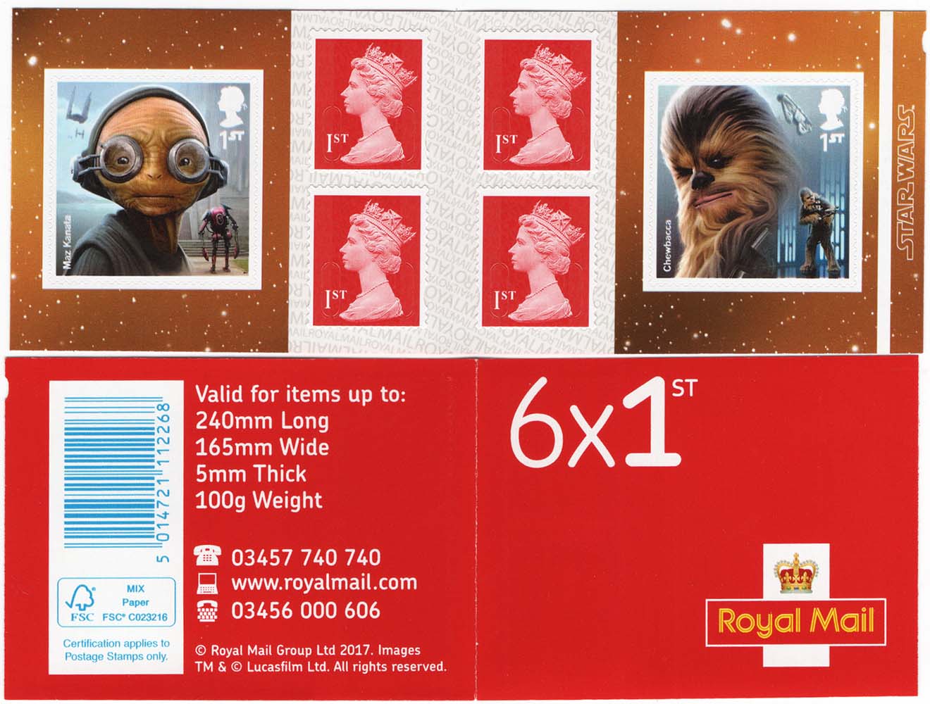 GB Booklets – SA PM57 6x 1st, 4x Machin + 2x Star Wars (Maz/Chew) [ref 291-822/s/ai0048]
