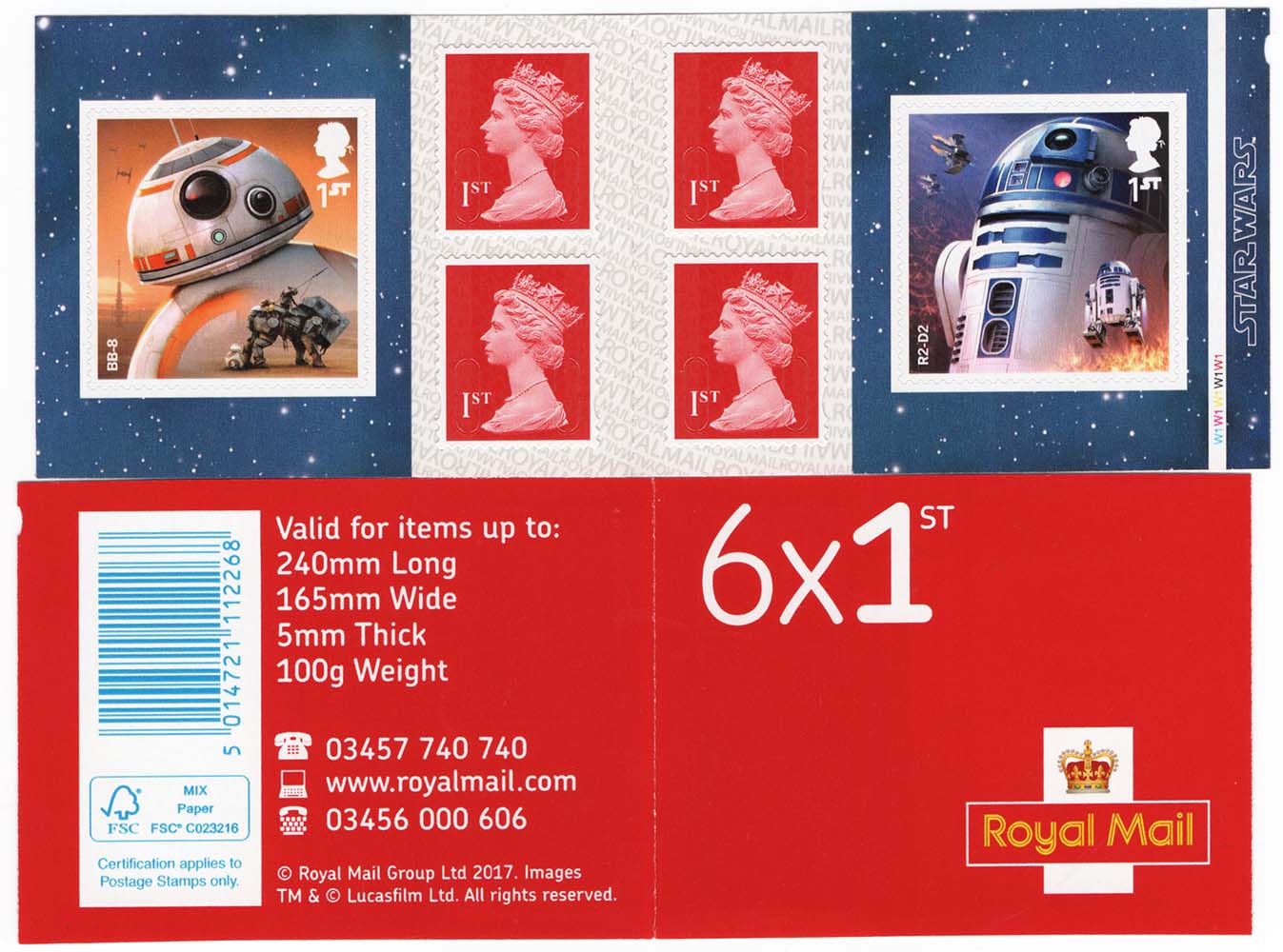 GB Booklets – SA PM58 6x 1st, 4x Machin + 2x Star Wars (BB8/R2D2) [ref 291-823/s/ai0049]