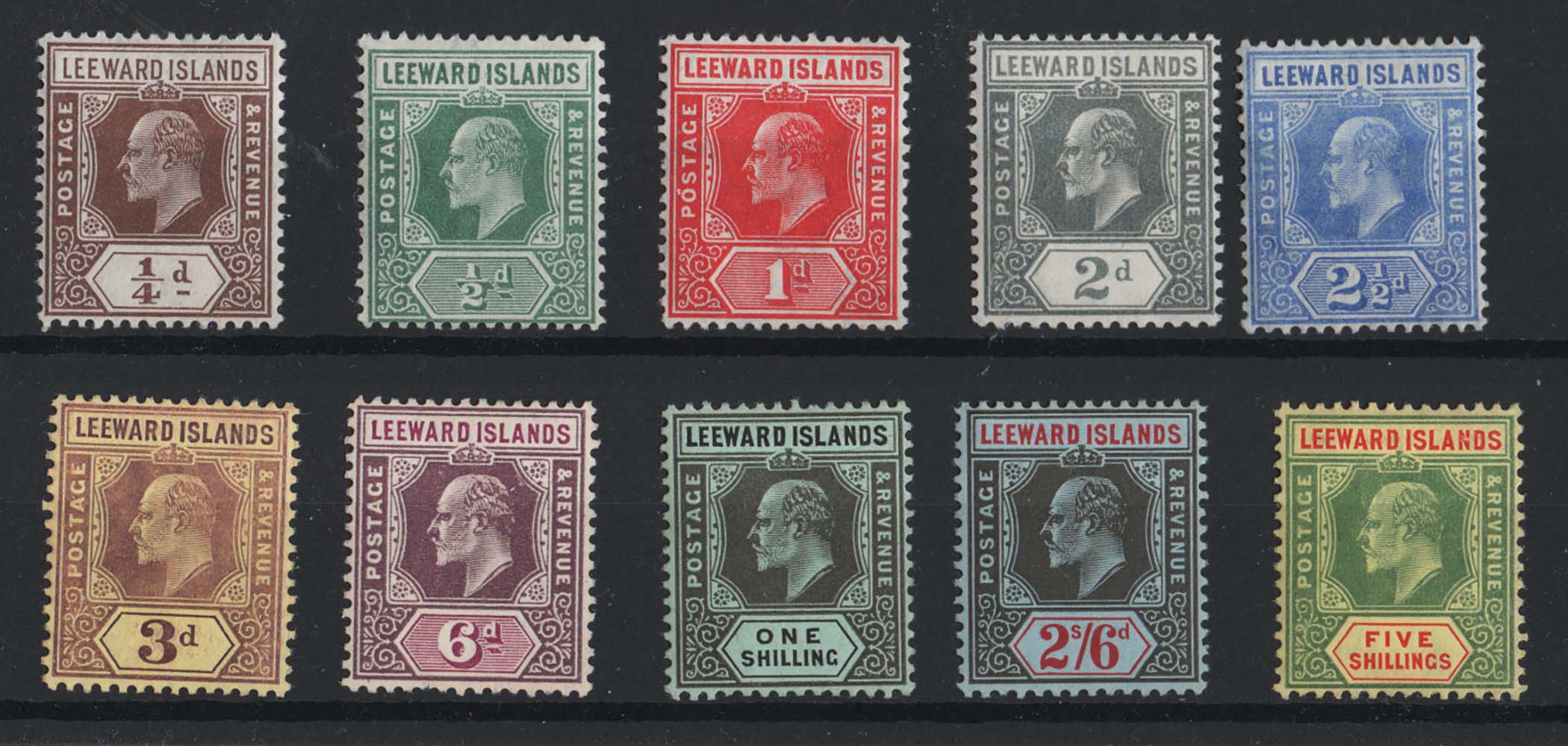 Leeward Is 1907 ¼d – 5s set of 10 fine mint sg36-45 cat £150 [ref 293-823/sa/ak0643]
