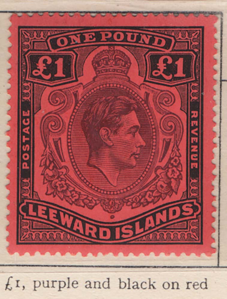 #825 Leeward Is 1938 £1 brown-purple & black/red sg114 vf mint, RPS cert