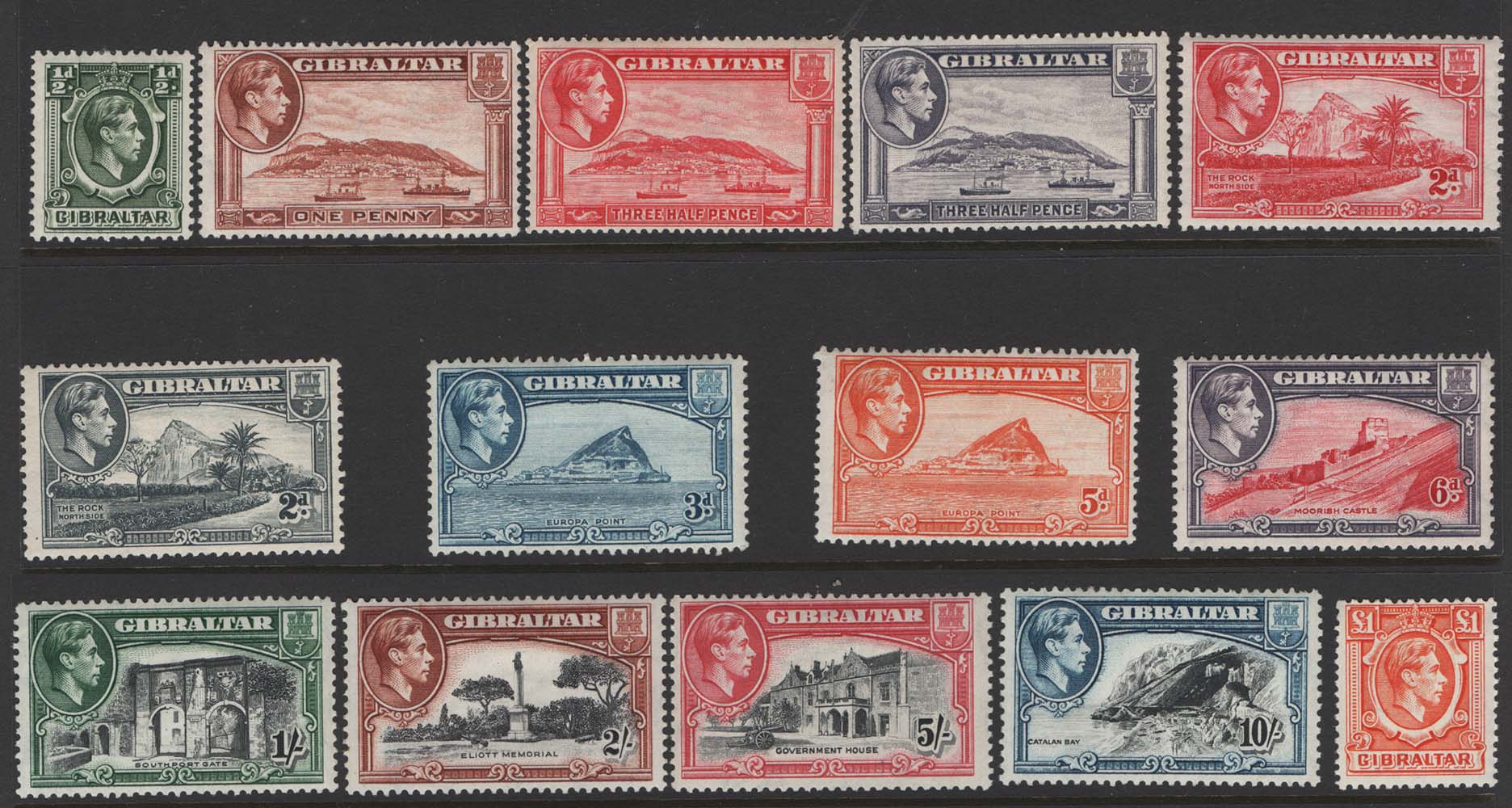 Gibraltar 1938 ½d – £1 set of 16 f mint (£1 um) sg121-133 c£180 [ref 290-833/b07/ag0212]