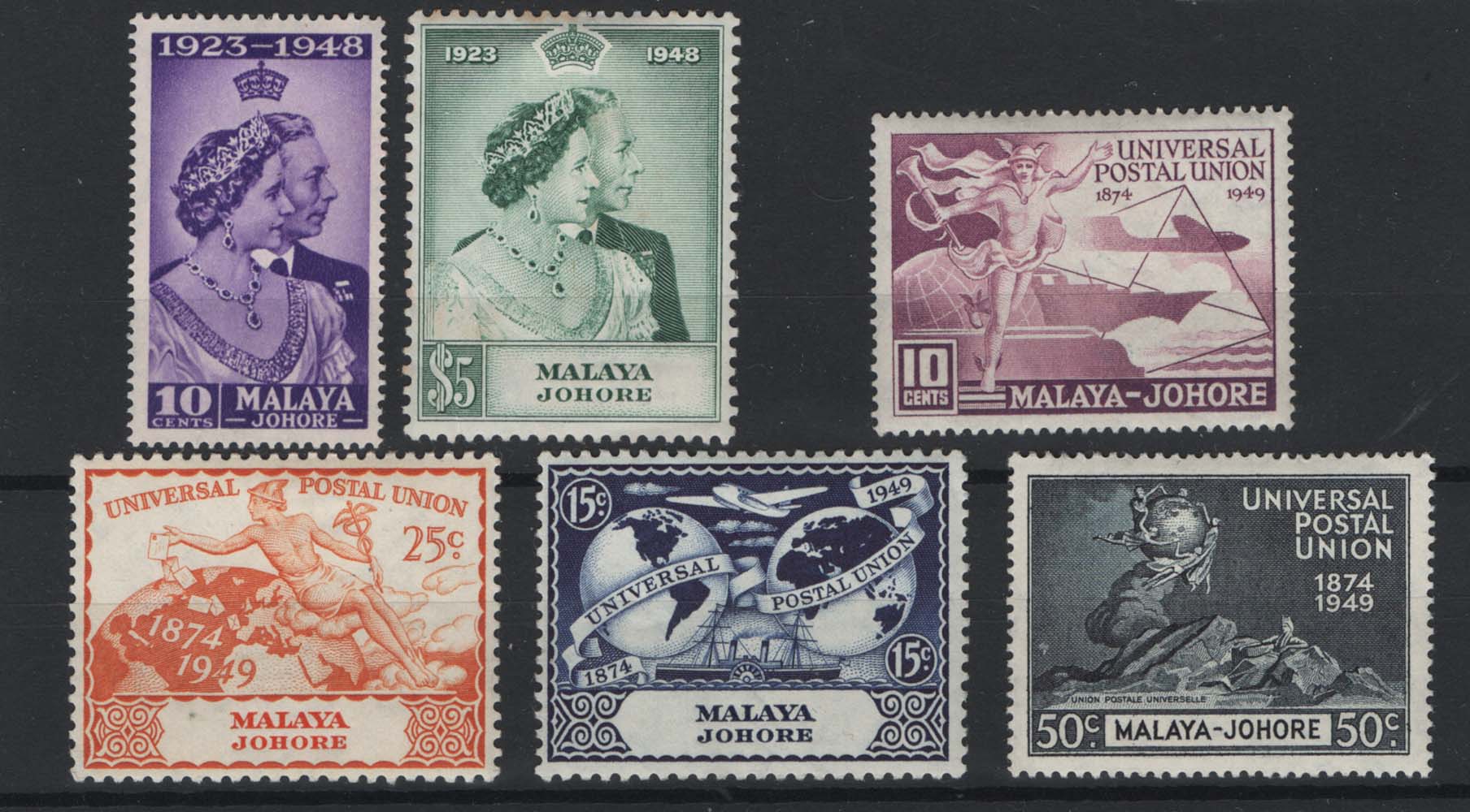 Malaya – Johore 1948 Silver Wedding set, crease otherwise very fine mint sg131-132 + UPU set very fine mint [ref 293-834/sa/ak0185]