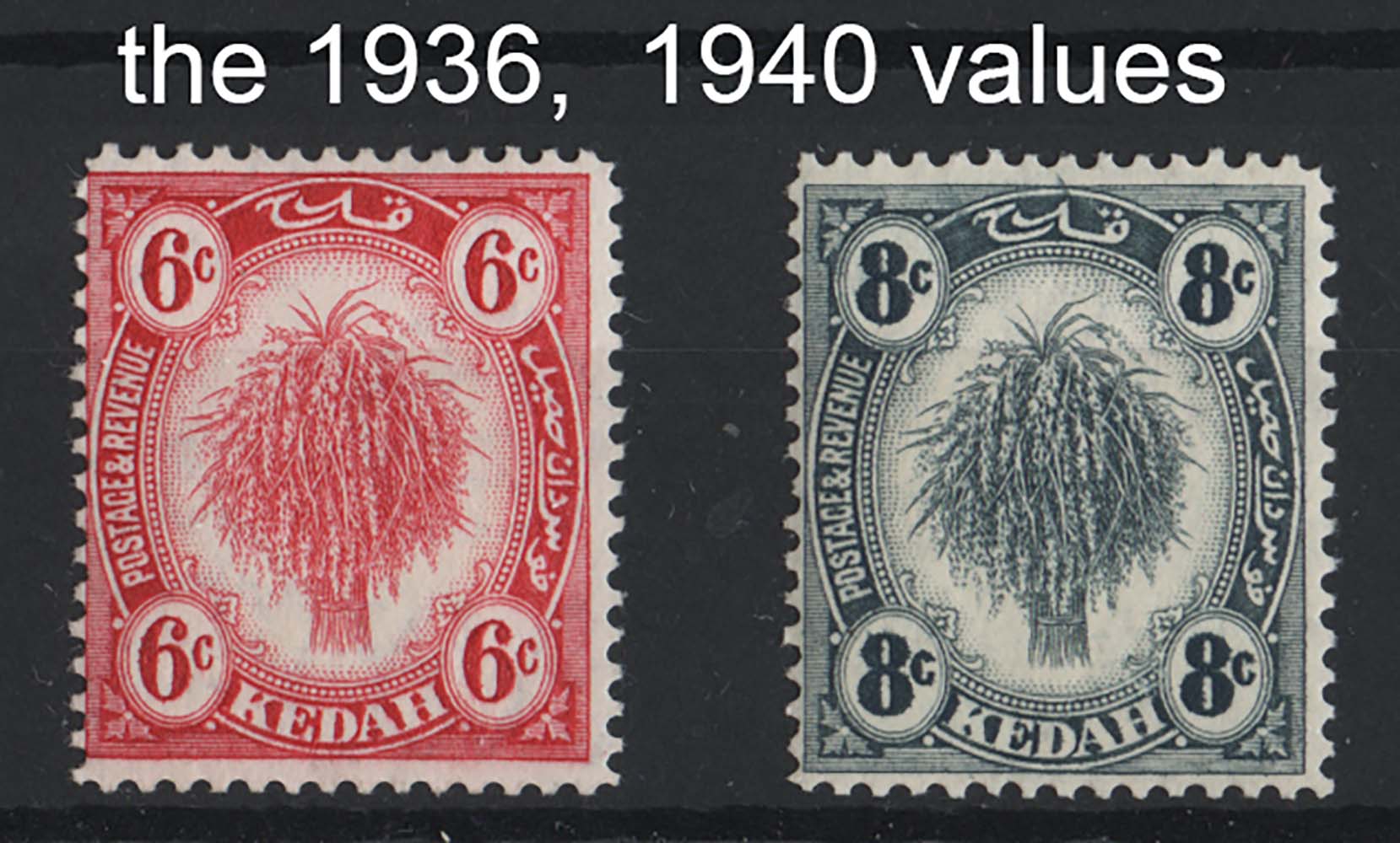 Malaya – Kedah 1922 6c carmine-red (1940) & 8c grey-black (1936) fine mint sg56a, 57 cat £53 [ref 293-836/sa/ak0189]