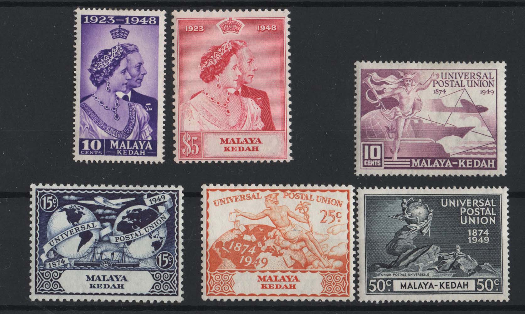 Malaya – Kedah 1948 Silver Wedding set very fine mint + UPU set sg70-75 [ref 293-839/sa/ak0190]