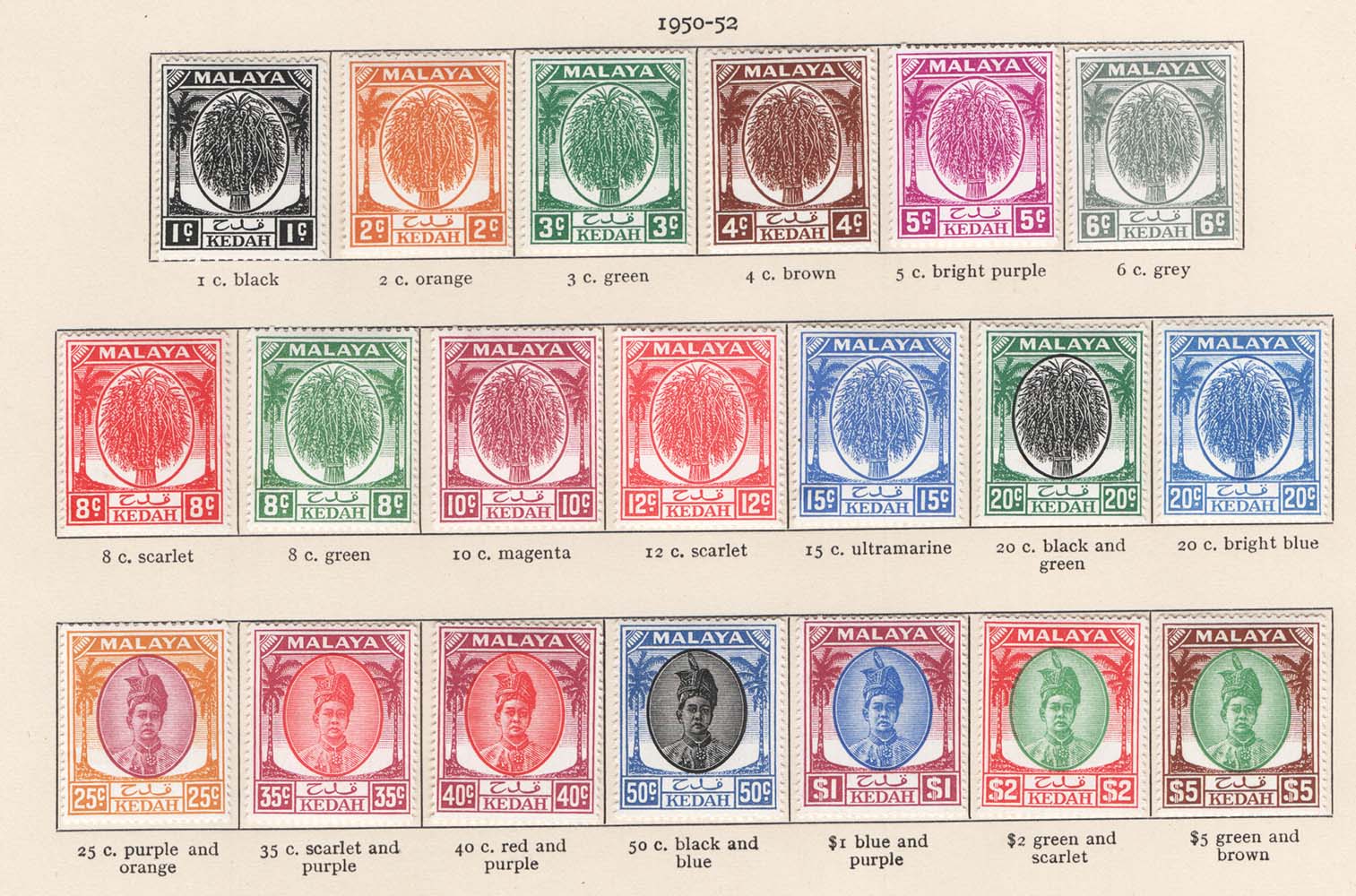 #840 Malaya – Kedah 1950 1c – $5 set of 20 without the 1955 30c sg76-90 c£162 fm