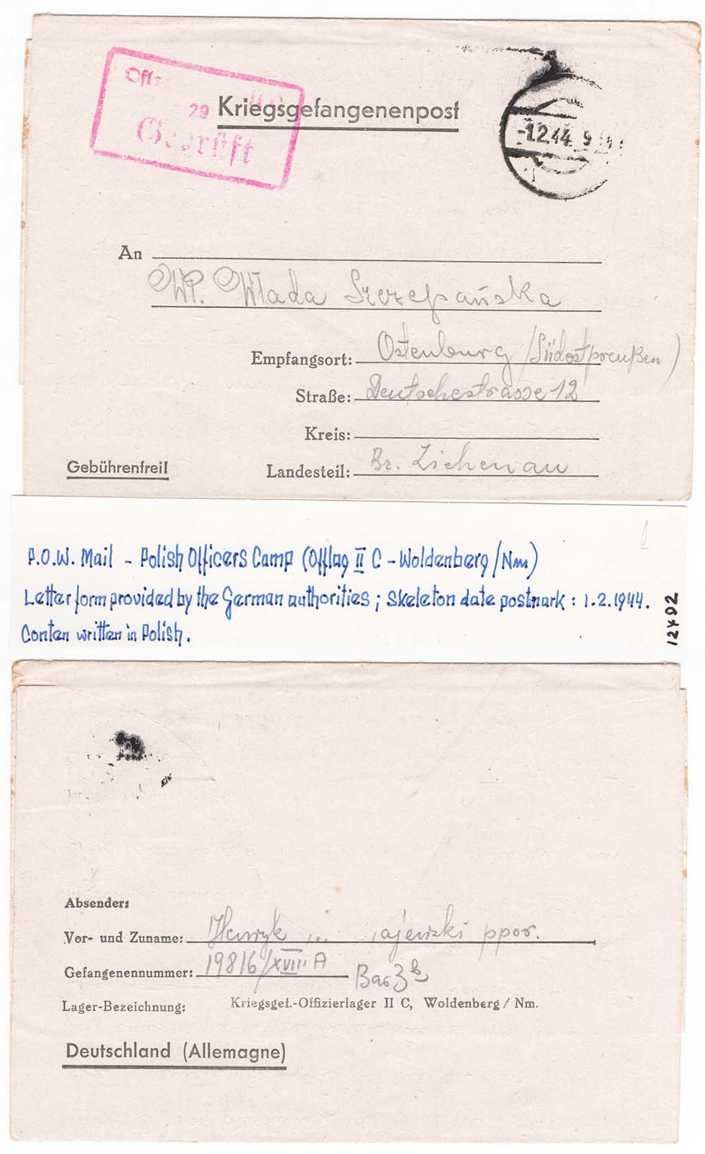 WW2 POW Mail lettersheet from Polish Officer’s Camp, contents in Polish