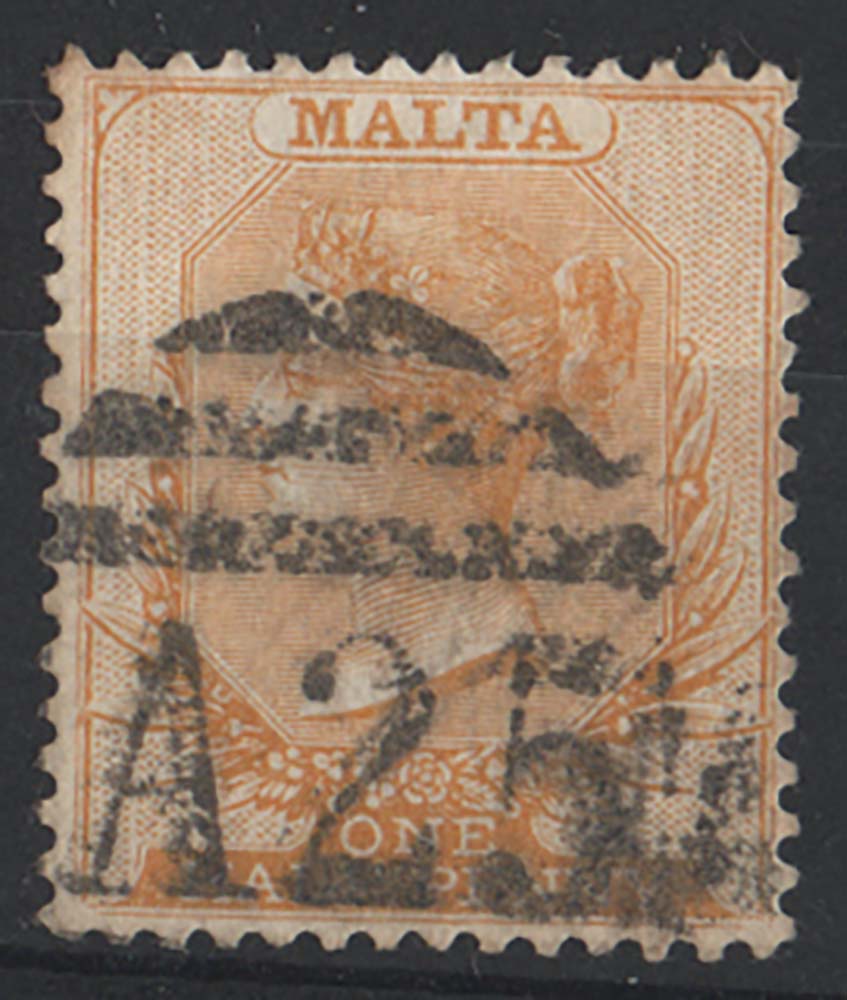 Malta 1882 ½d orange-yellow sg18, used, “A25” duplex