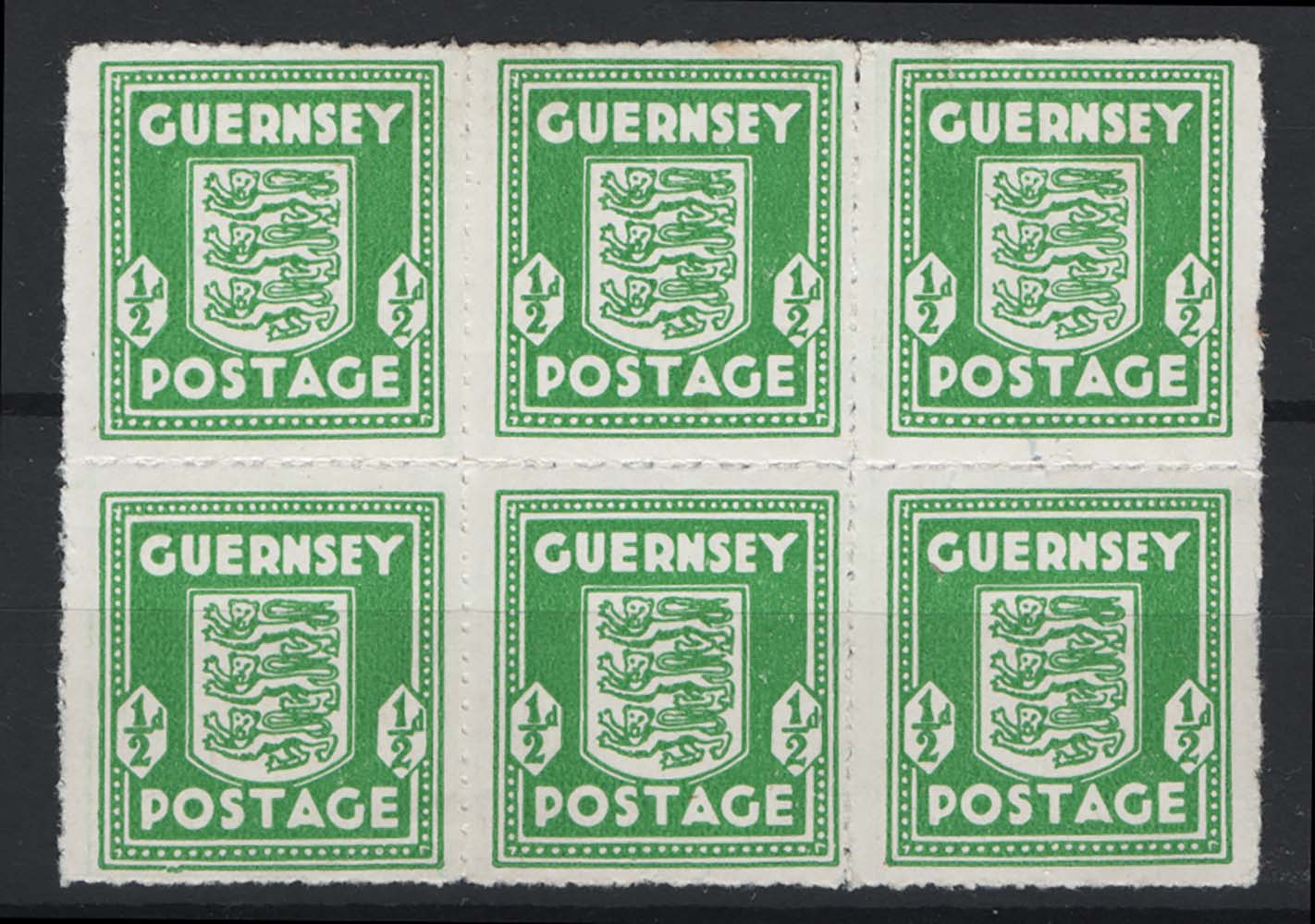 Guernsey 1941 Wartime Arms ½d deep yellow-green (10th printing) vf mint blk of 6 sg1 c£36 [ref 290-848/sa/ag0404]