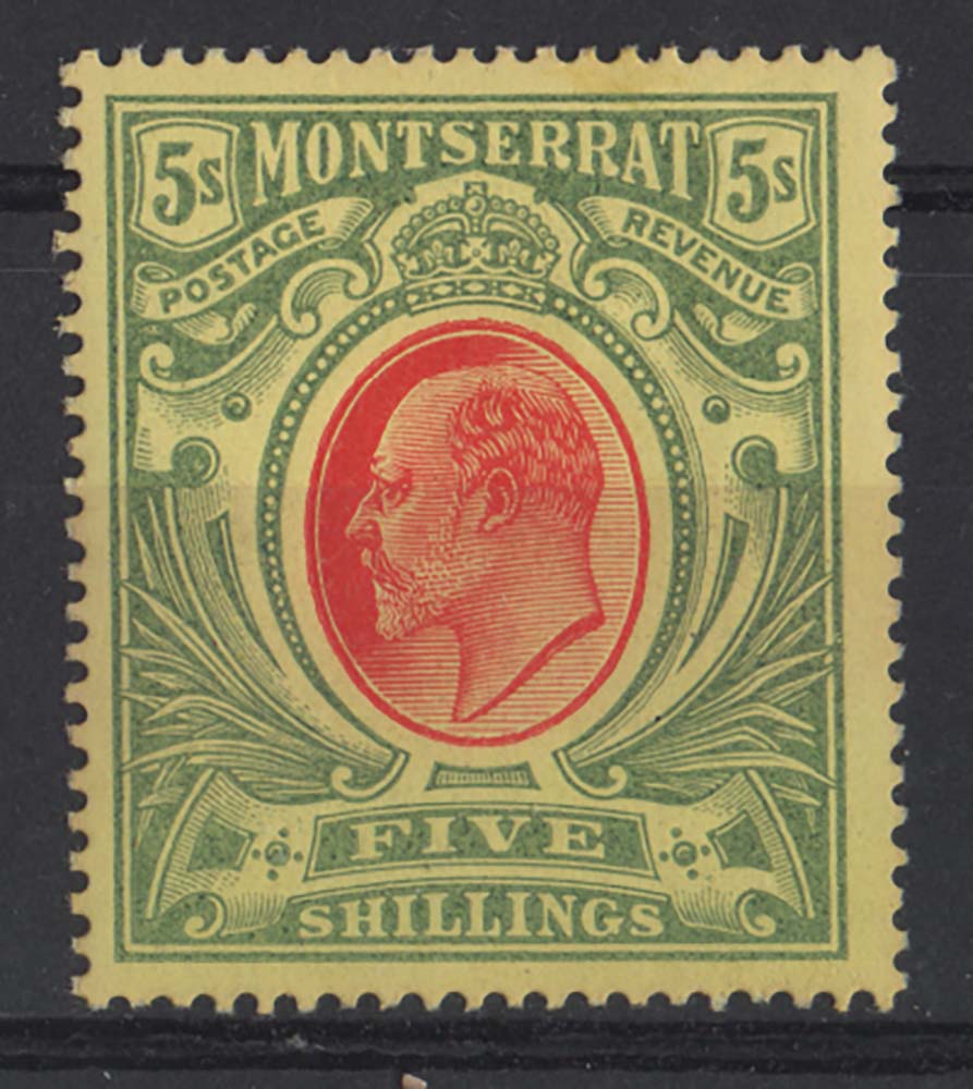 Montserrat 1908 MCA 5s red & green/yellow very fine mint sg47 cat £80 [ref 293-854/sa/ak0679]