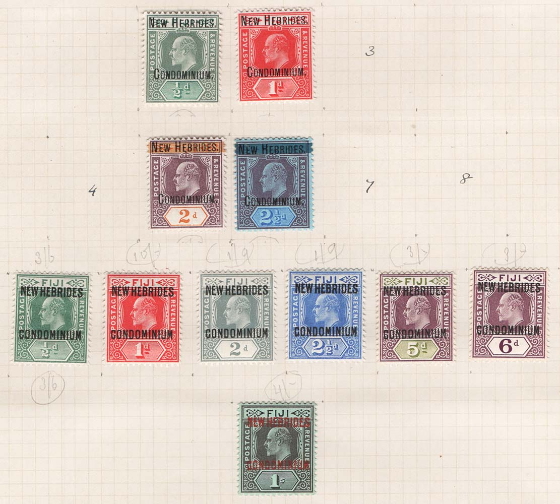 New Hebrides 1908 KE7 fine mint range between sg1-16, see scan cat £40+ [ref 293-864/b07/ak0682]