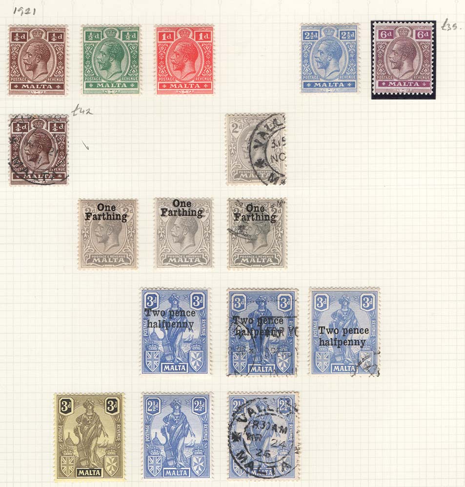 Malta 1921-25 m&u range incl 1921 6d um c£150+ ae0469 sa 289/ #867