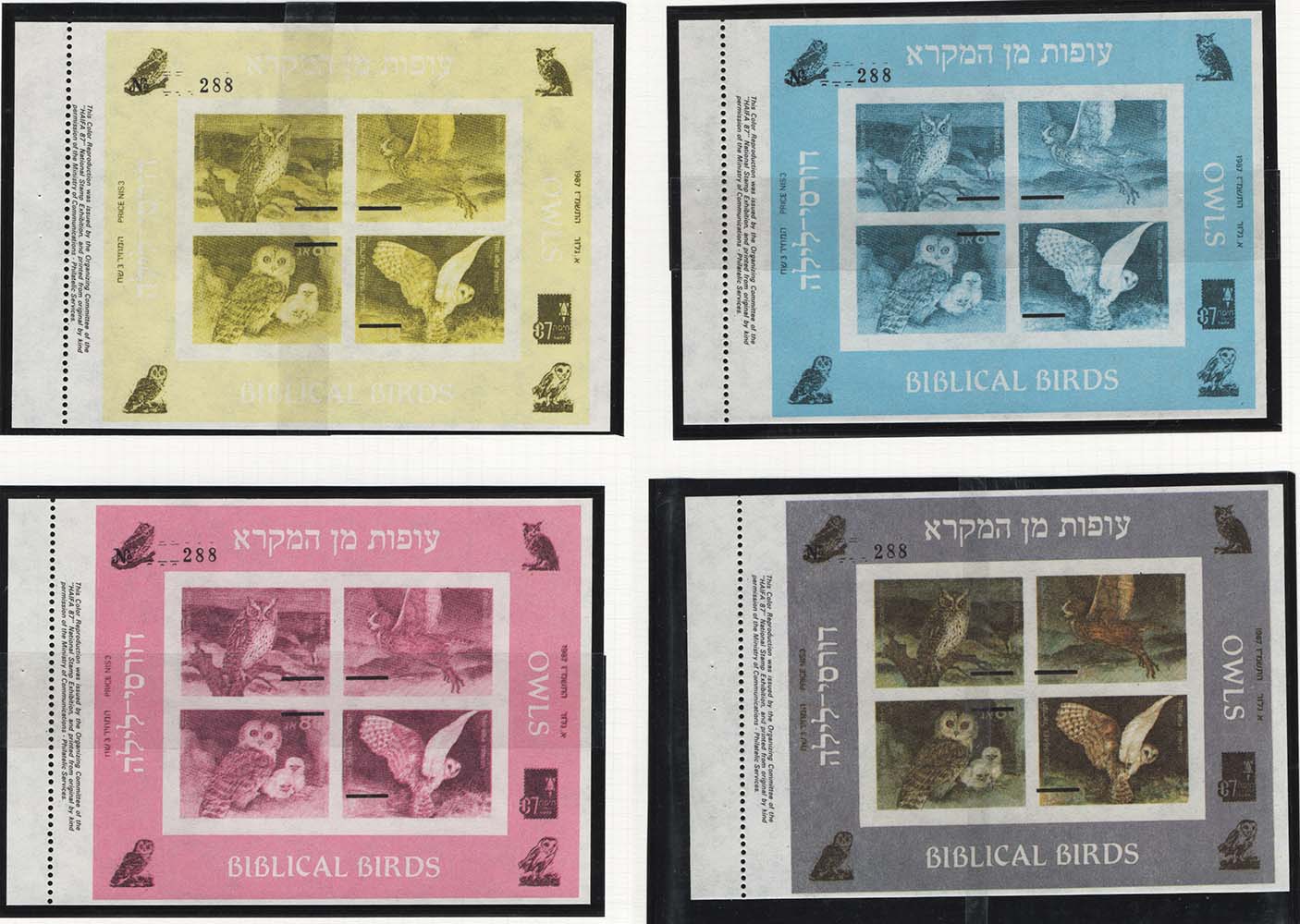 Israel 1987 Biblical Birds of Prey (Owls) sg1019 coloured Progressive proofs [4] [ref 291-873/b07a/4a2578]