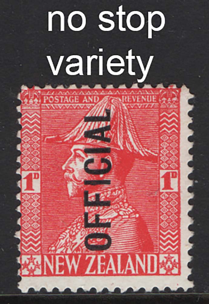 New Zealand 1927 1d Field Marshall perf 14 Official, missing stop after Official variety sgO111a fine mint cat £65 [ref 293-873/sa/ak0356]