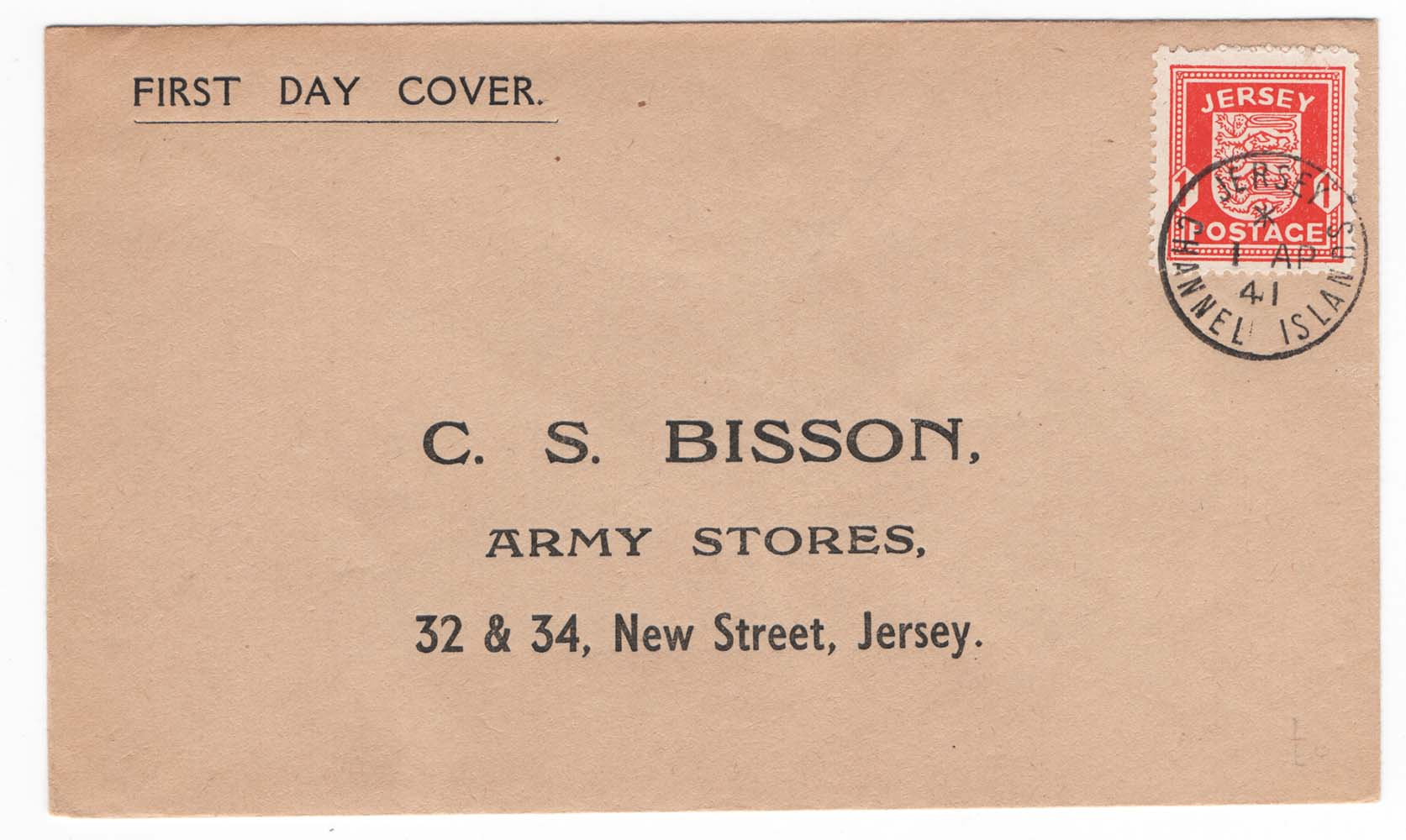 Jersey 1941 Arms 1d FDC, v fine printed cover sg2 [ref 291-877/sa/ai0181]