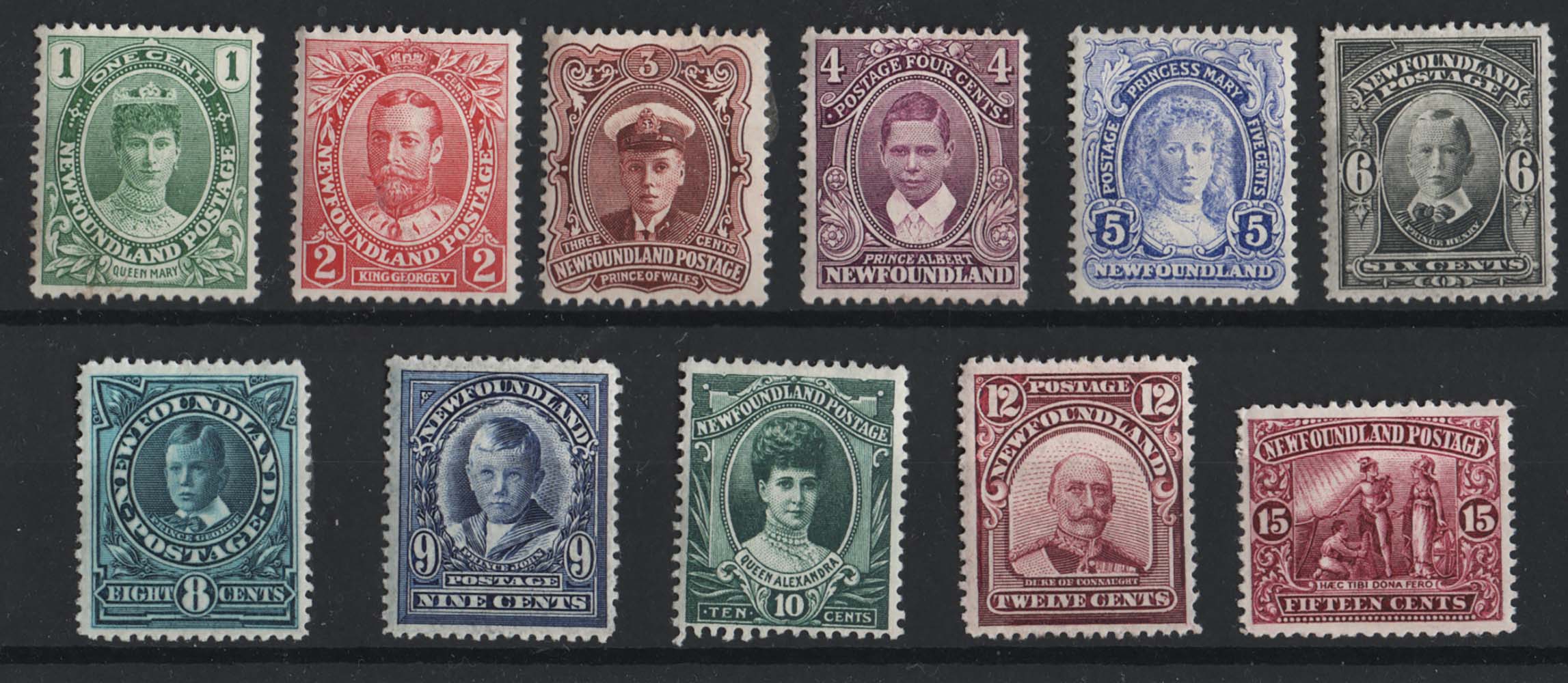 Newfoundland 1911 1c – 15c set of 11 fresh m/mint, heavyish mount sg117-127 cat £300 [ref 293-882/sa/ak0639]