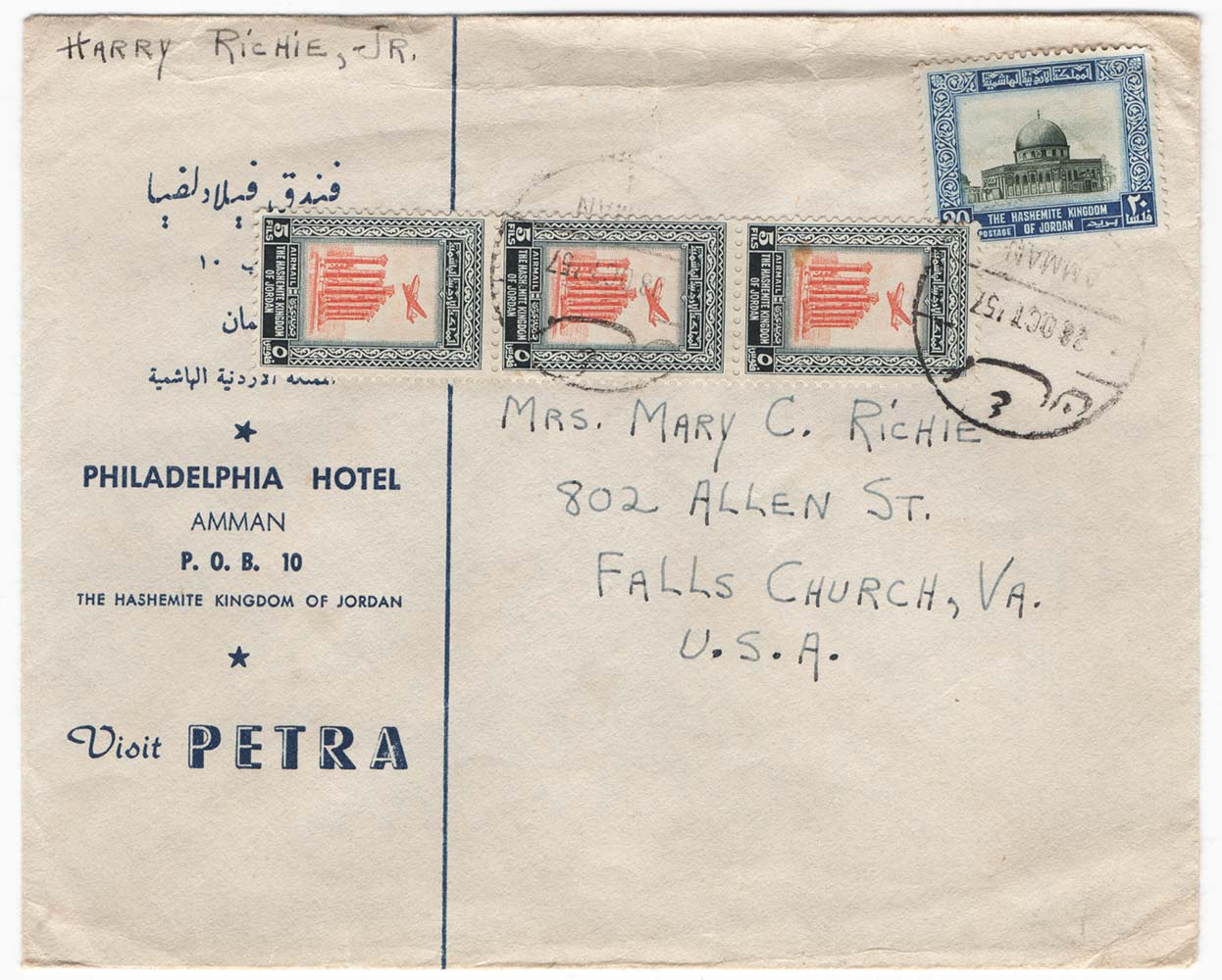 Jordan 1957 Neat Philadelphia Hotel ‘Visit Petra’ cover to USA [ref 290-886/l/ag0422]