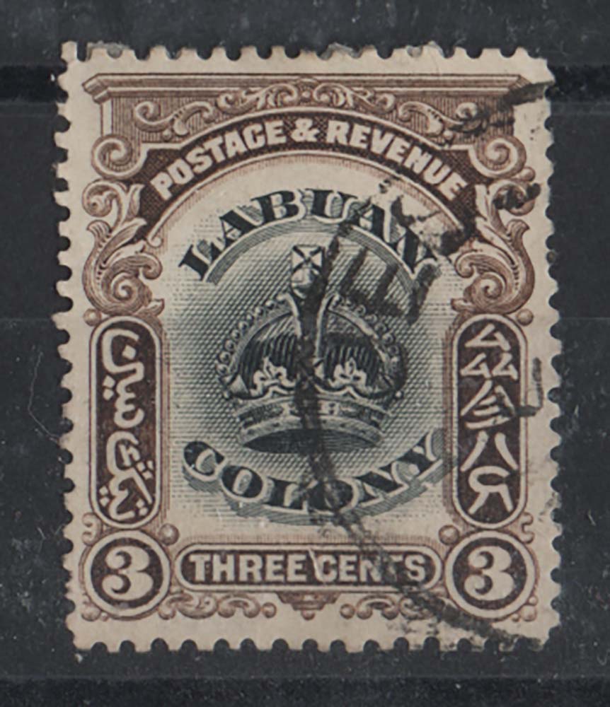 Labuan 1902 3c black & sepia sg119, postal cancel, signed on back, vfu [ref 290-890/sa/ag0146]