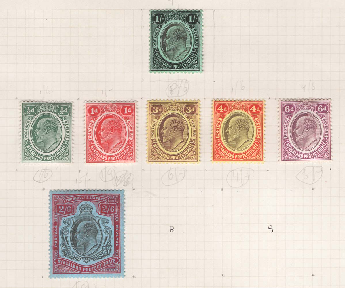 Nyasaland 1908 KE7 set up to 2/6d fine mint sg72-78 cat £117 [ref 293-890/b07/ak0683]