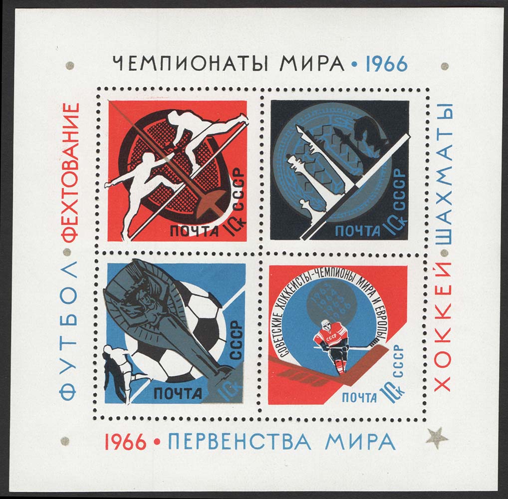 Russia 1966 World Sports Championships m/sheet unmounted mint sg3324 cat £20, football, chess, fencing, hockey themes [ref 293-911/s/ak0550]