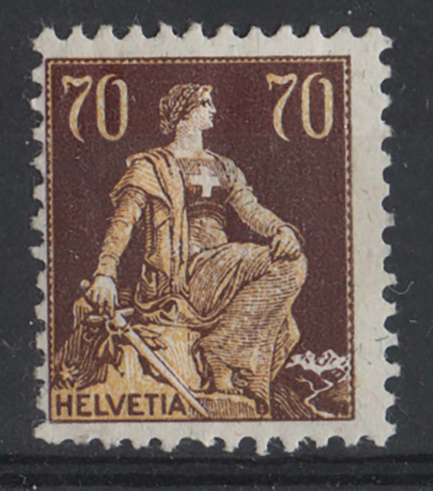 Switzerland 1908 70c yellow & chocolate, sg242, g-f mint, heavy hinge ae1040 jr17 289/ #914