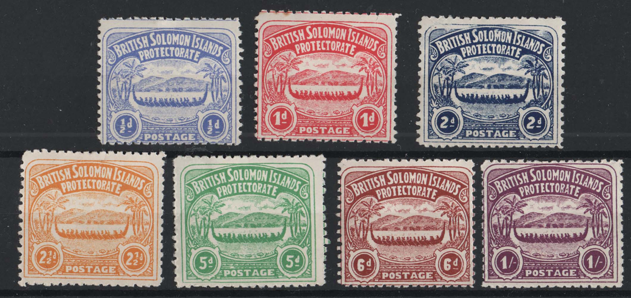 Solomon Is 1907 Large Canoes set of 7 fresh m/mint, odd small imperfection sg1-7 cat £300 [ref 293-921/sa/ak0684]