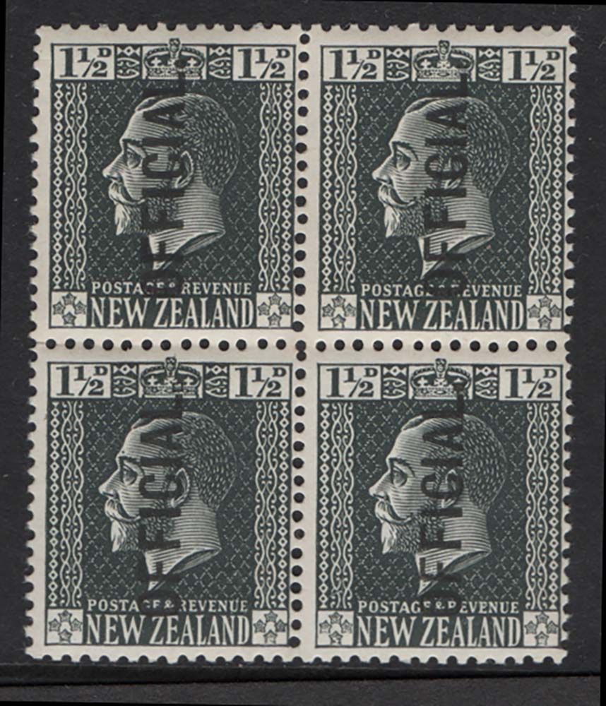 New Zealand 1915 1½d grey-black Official De La Rue paper sgO89 unmounted mint block of 4 cat £36 as mm [ref 291-925/sa/ai0388]