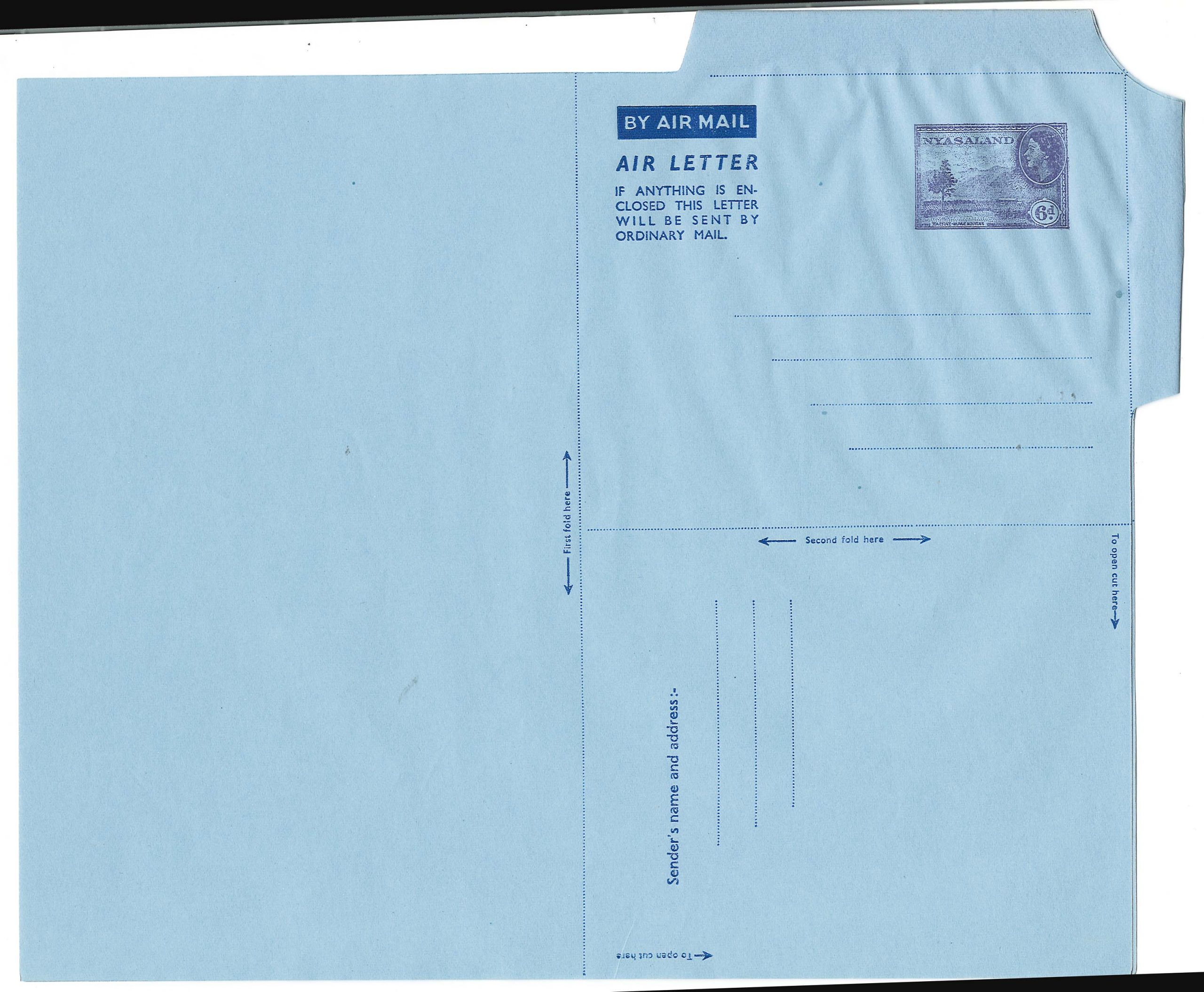 Nyasaland 1953 6d violet/blue airletter, unusual scalloped TR corner, fine unused, [no reserve] any reasonable bid might secure it [ref 291-941/l/6k0849]