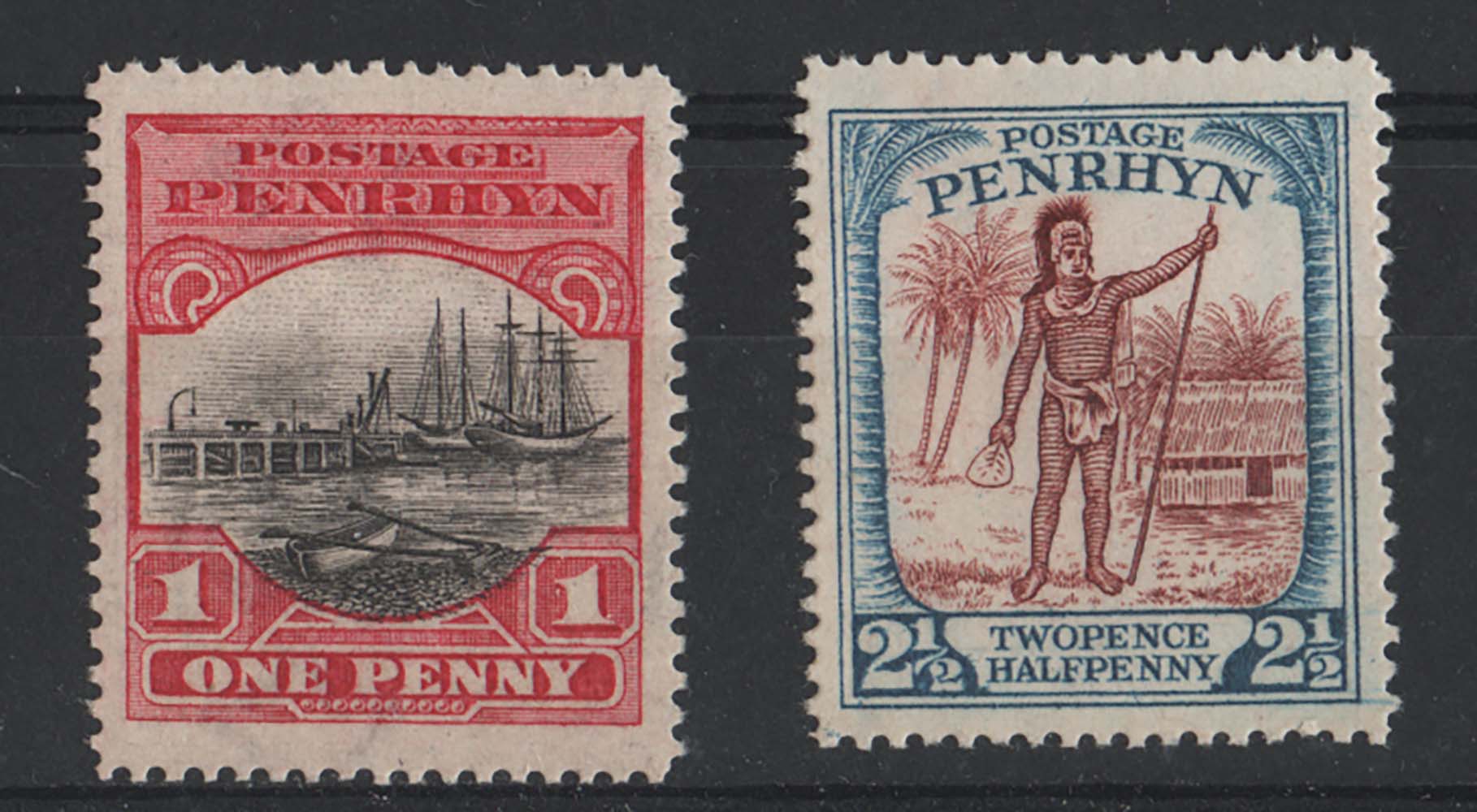Penrhyn 1927 1d black & deep carmine, 2½d red-brown & dull blue unmounted mint sg39-40 cat £34 as mm [ref 291-946/sa/ai0348]