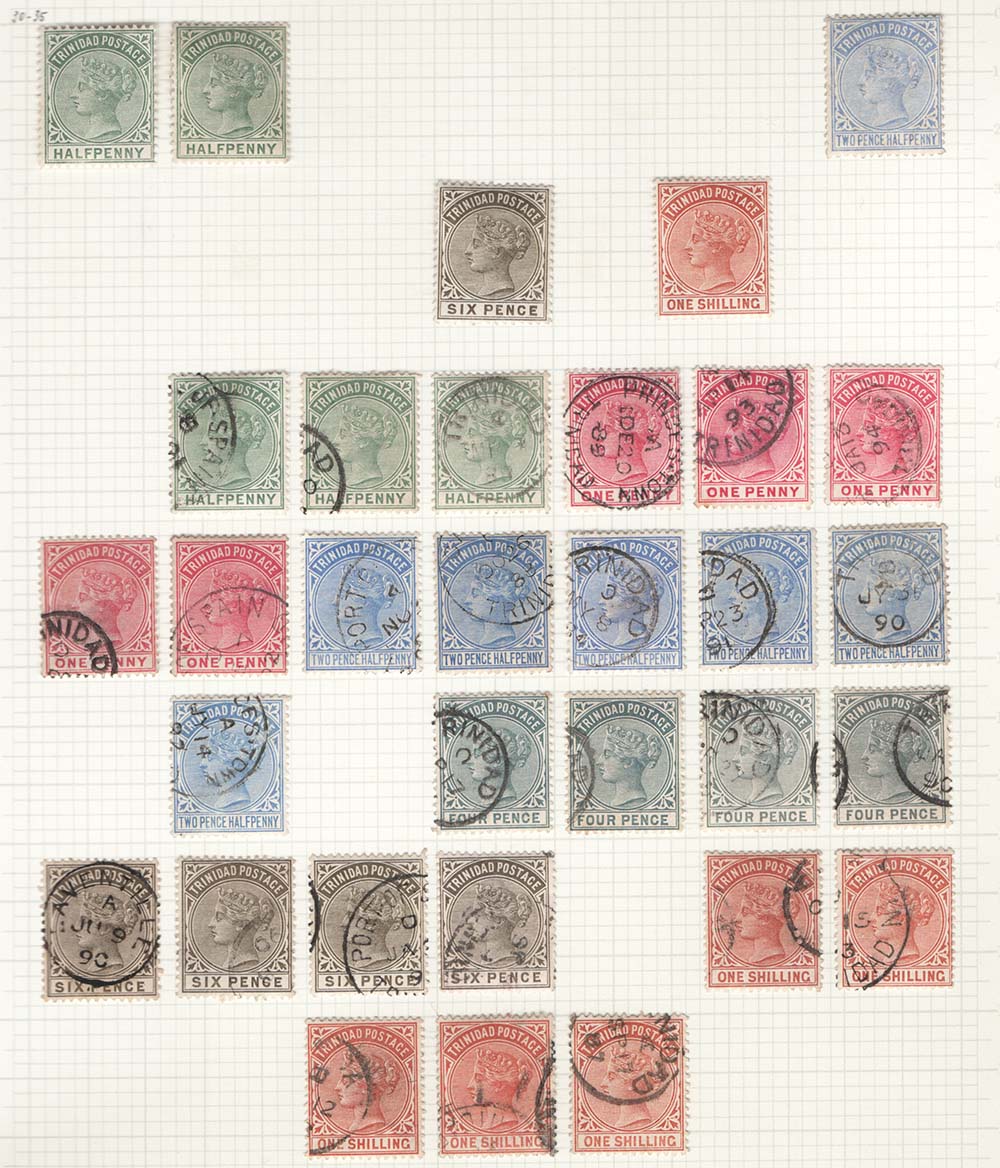Trinidad 1883 ½d green – 1s perf 14 watermark CA fine used + 5x fine mint sg106-112, duplicated used, small range of cancels cat £100+ [ref 293-959/b07/ak0411]
