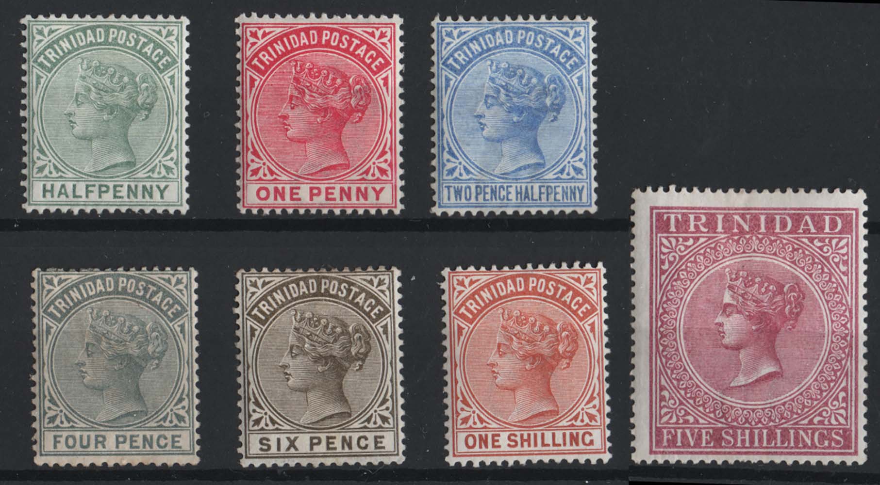 Trinidad 1883 ½d green – 5s maroon perf 14 very fine mint sg106-113 [ref 293-960/sa/ak0409]