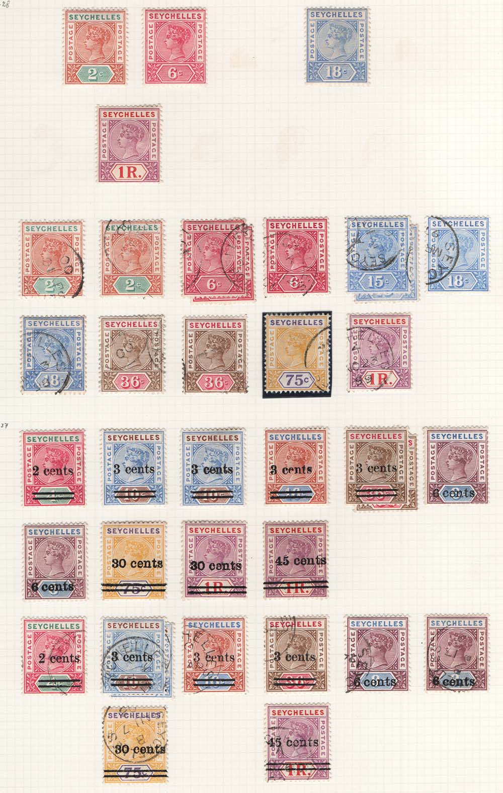 Seychelles 1887-1901 fine mint and fine used range sg28, etc including overprints, nice lot cat £380+ [ref 291-968/b07/ai0567]
