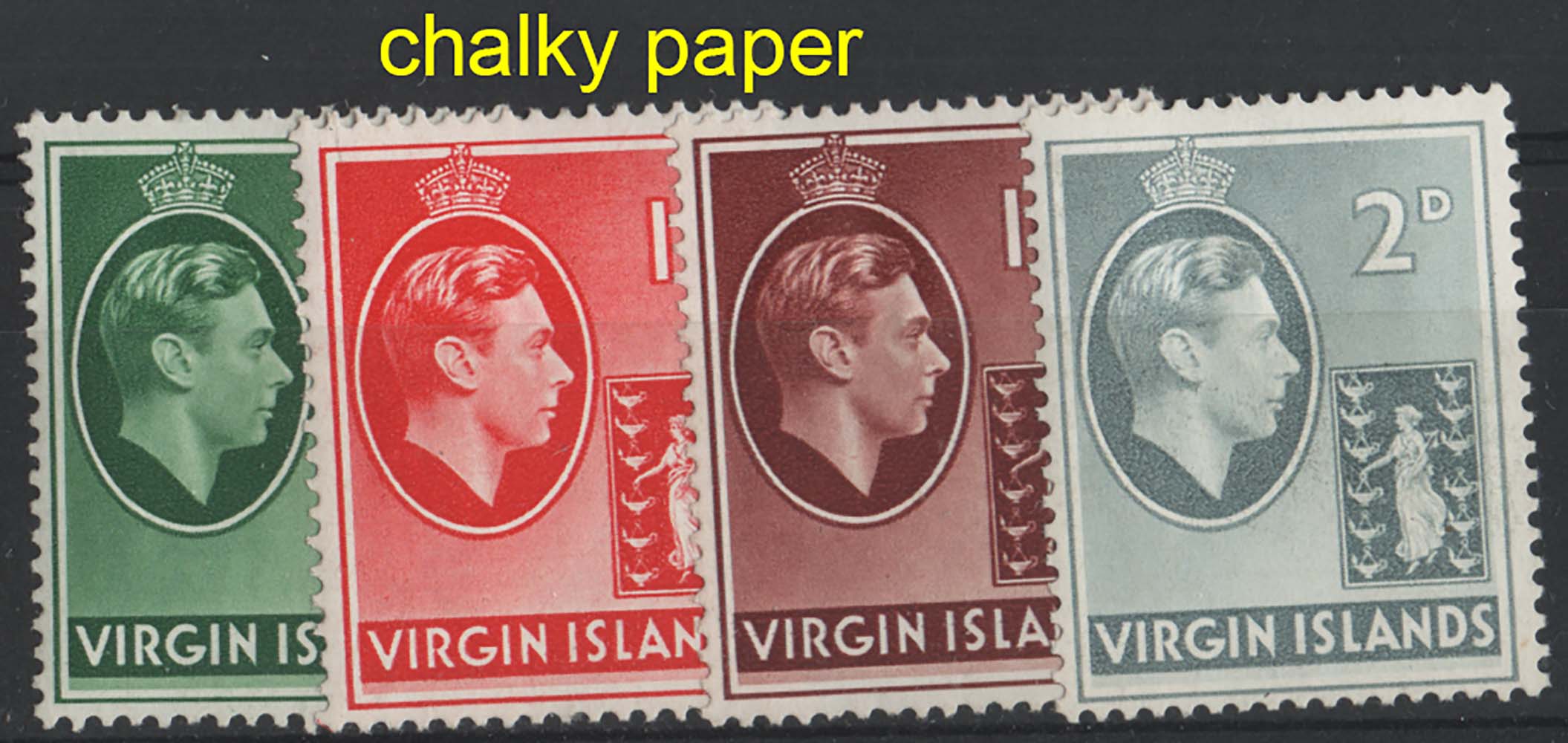 Virgin Is 1938 set to 2d on chalky paper, sg110/3, f mint