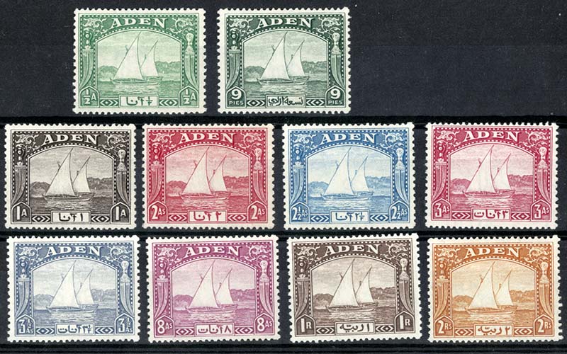 Aden 1937 Dhows set up to 2r fine mint sg1-10 ~cat £240 [ref: 292/2 sa/9c1060]