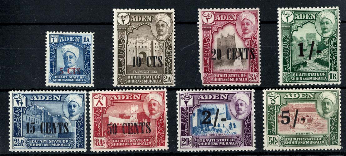 Aden – Shihr 1951 New currency ovpt set f mint (20c fault c25p) sg28-38 c£55