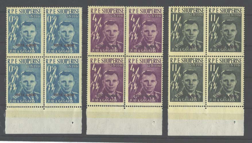 Albania 1962 Airs set red ovpt unmounted mint marginal blocks of 4 sg691-3 cat £456 , Eastern Europe [ref: 292/6 lD/8m0752]