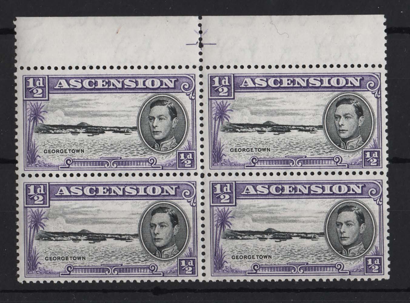 Ascension 1938 ½d black & bluish-violet perf 13 Variety, long bar to E sg38ba um positional blk of 4