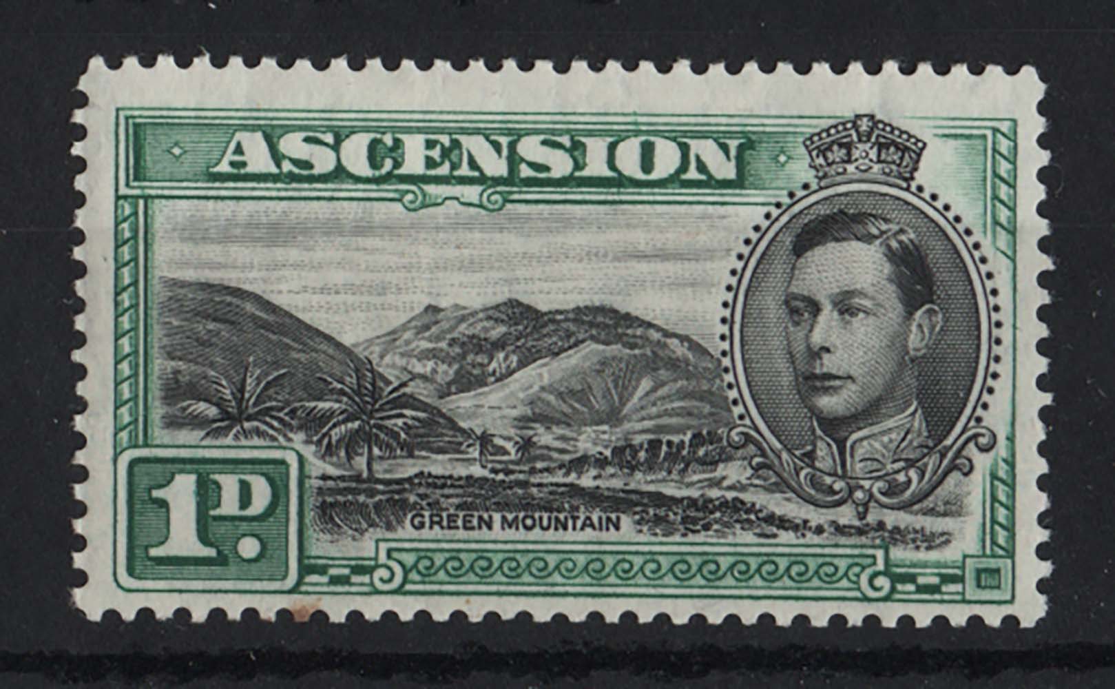 Ascension 1938 1d black & green, Green Mountain sg39 f mint, 1 lightly foxed perf c£45 [ref 287bb51/sae/9u0394]